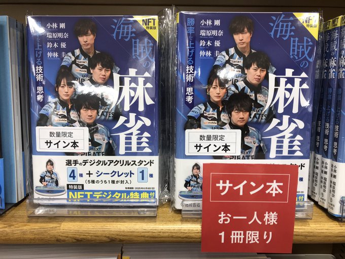 【札幌】 \ サイン本入荷✨ / 『海賊の麻雀 勝率を上げる技術と思考』NFT特装版(税込2,750円) 選手4名全員のサインが入った商品が入荷しました👏 購入がまだの方は、この機会にいかがでしょうか? ※取置、代引不可 ※お一人様一冊まで #Mリーグオフィシャルショップ
