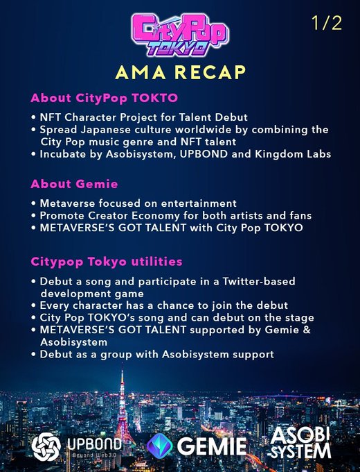 Recap from our last AMA with Gemie📢 💫About City Pop 💫Metaverse's
