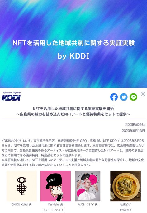 KDDIさんと NFTを活用した 地方共創実証実験 👹メモ👹 👹地域の活性化に貢献できること… https://t