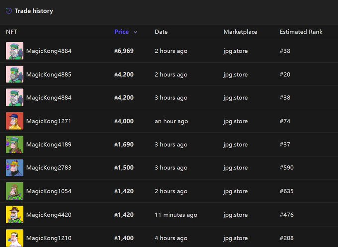 The high sales of @MagicKongs so far #Cardano #NFT