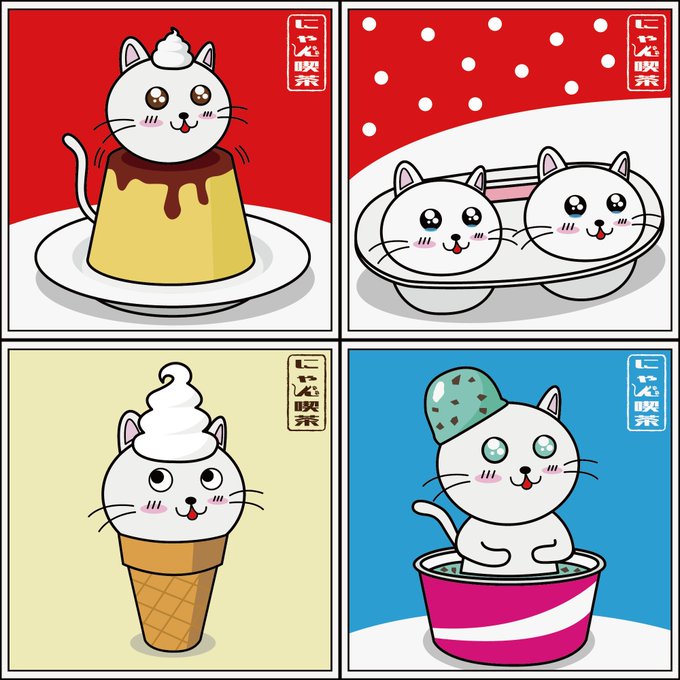 明日10:00オープンの『にゃん喫茶』🍨 クリームソーダ系6種の他に4種のスイーツがメニューに加わります。 ・プリン ・雪降るおもちアイス ・ソフトクリーム ・チョコミントアイス 見に来てね🐱✨ ✅リンクはリプ欄に貼っておきます👀 #NFT