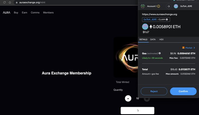 I just minted 10 Aura Platinum NFTs for less than $20