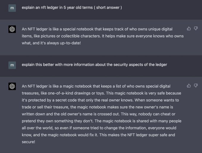 I asked open AI to explain an NFT @Ledger in 5 year