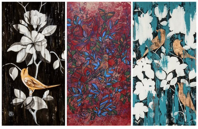 Gn 💫💫💫💫 my flowers & birds paintings on foundation