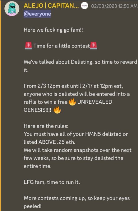 Did you know @HMN5_NFT are running a "De-List Campaign"