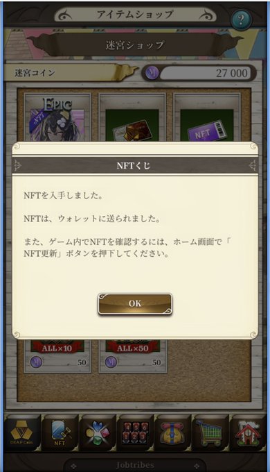 #jobtribes 迷宮コイン、NFTくじで頂きました😃 ありがとうございます🙇 https://t