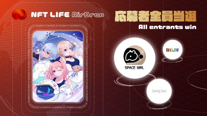 NFT LIFE 3rd AirDropがついに始動🎉🎉 SPACE GIRL主題歌の全世界配信も決定🎊 お楽しみ満載のBIGイベントをお見逃しなく🔥 NFT