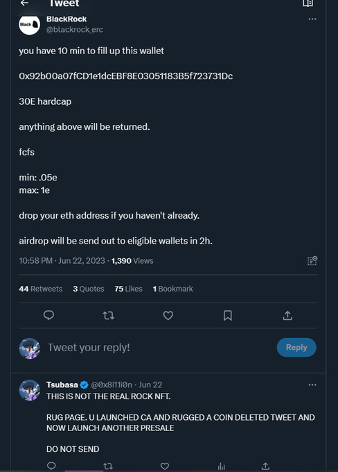 A fake blackrock page preying on the successful opensea