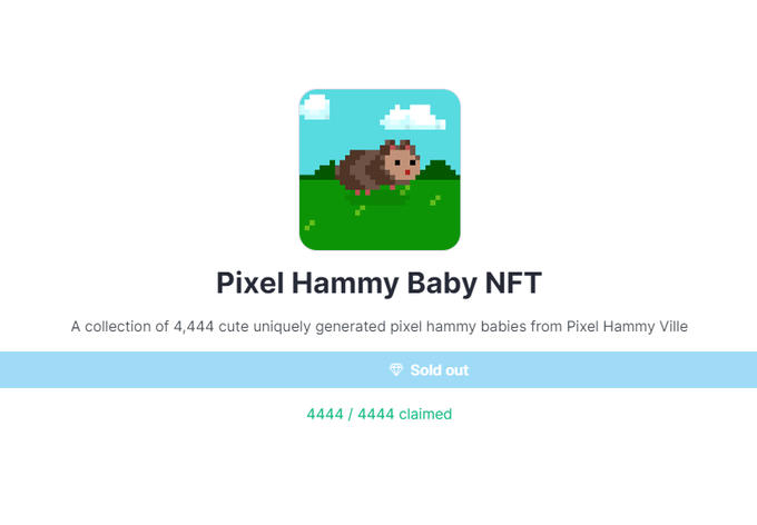 SOLD OUT 🔥 Pixel Hammy Baby NFT is officially minted