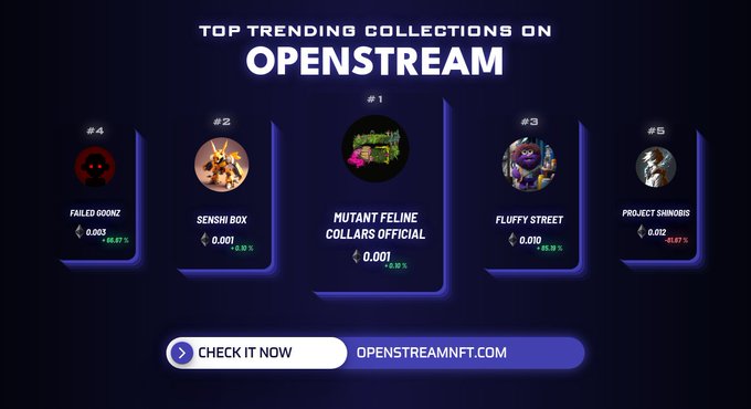 Top Trending collections in the last hour by @OpenStreamNFT