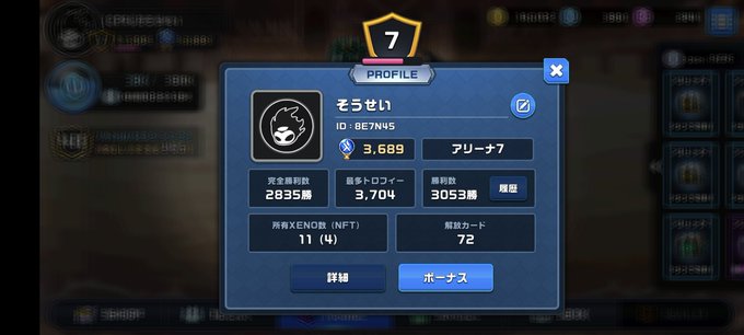 #XENO いつの間にか3000勝超えてましたがNFTドロップ見たこと無いです😂 https://t