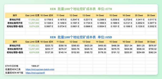 这两天 Gas 到 10 左右了, XEN 挖矿开始活跃。 小编分享5个XEN挖矿经验: 👉1. 不要用官方的单号模式挖
