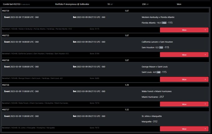 1.9 - 23.8 SOL ๐ค An anon bettor cashed this parlay