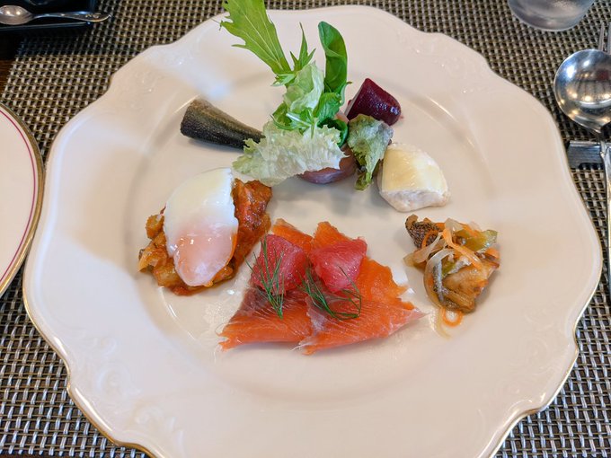 ラサリーブでランチ🍴 鳩のマリネ・トマトの冷製スープ・自家製ライ麦パン・イトヨリのポワレ #NFT #ラサリーブ半田山 #フランス料理 #ジビエ料理