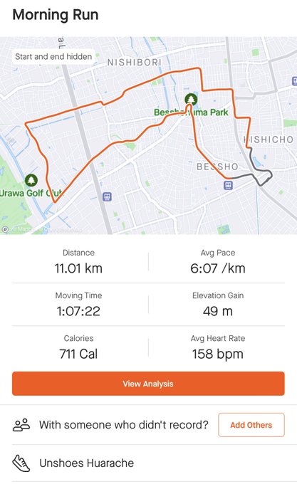 朝のひとっ走り🏃♂️終了〜 ワラーチ🩴だとスピードは出ませんが、👟に🧦だと足🦶が暑くて不快になりよりよっぽど心地よいですね! シャワー🚿も浴びて、スッキリ😊 さて、次の予定へGo❗️ #STEPN