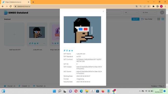 I Just mint my first NFT on #SINSO #DataLand. You can