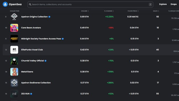 Collection Stats 📝 Trending (Best Polygon Rank) ✅ Collectibles
