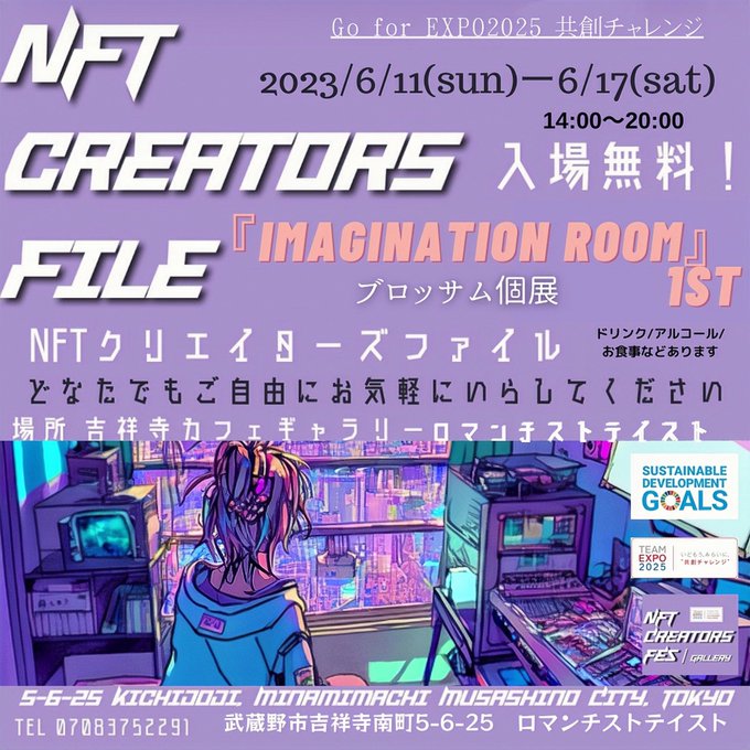 GA!☂️☁️✨ 本日より❗️ ブロッサム初の個展 『 IMAGINATION ROOM 』1st 2023/6/11(sun)-6/17(sat) 14:00〜20:00 小さなギャラリーレストラン 場所:吉祥寺ロマンチストテイスト 雨なのでご無理せず〜🙋♀️ ご都合よろしければぜひお寄りください🥳✨✨ #個展 #吉祥寺 #ギャラリー #NFT #nftart…