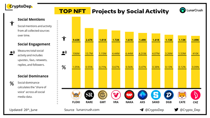 ⚡️TOP #NFT Projects by Social Activity 26 June 2023 $FLOKI