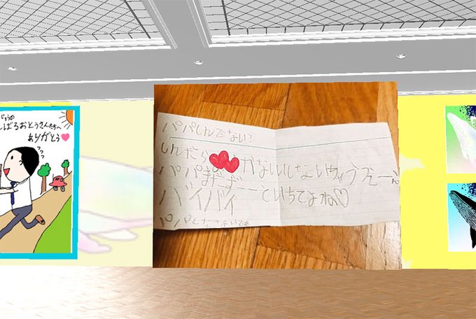 ★父の日企画★ HEXAメタバース・キッズNFT展示会 開催 今日まで まみーちかさんの息子さんのNFT作品を展示しました。 息子さんがお父さんに宛てた手紙、内容は・・・。 大丈夫でしょうか?黒歴史公開な気配がします。 https://t