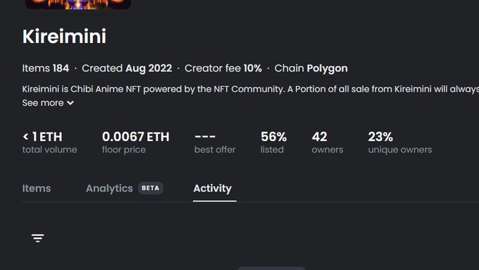 #KireiNFT dropped first item in June which is almost