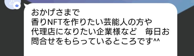 コンテンツに香りを付ける技術が出来たので、今後は香り付きのものとそれ以外に分かれてきます🤔 圧倒的に香り付きの需要が高くなるはずなので、ある程度事業が進んでくると提携の殺到が考えられます🤭❣️ しかも全世界から❗ 香りNFTと