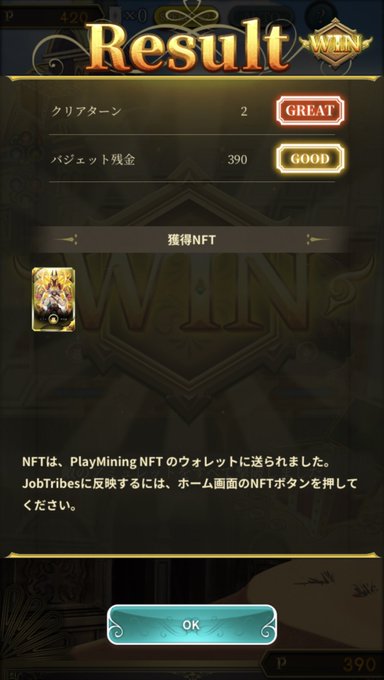 NFT獲得クエスト『IGNILORD & カニ漁師』でしたー!!😆✨ 初EpicのNFTです! 思い切ってチャレンジしてよかった🥰 #jobtribes