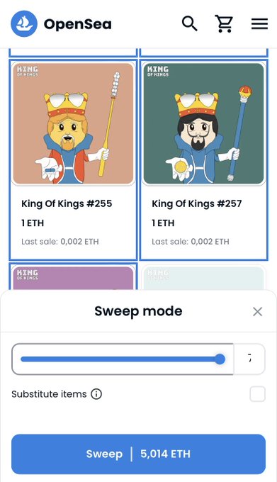 #NFT Sweep Mode activated on #opensea 🧹 The King Of