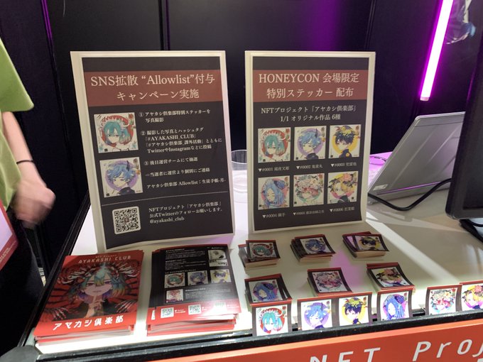 そういえばIVSの1日目に偶々ブースを見つけて思わず寄ったのですが、秋赤音さんのNFTプロジェクト! 学生の頃はよく歌ってみた聴いてたな〜画集も買って眺めてました👀 今後も要チェックね👁 #AYAKASHI_CLUB