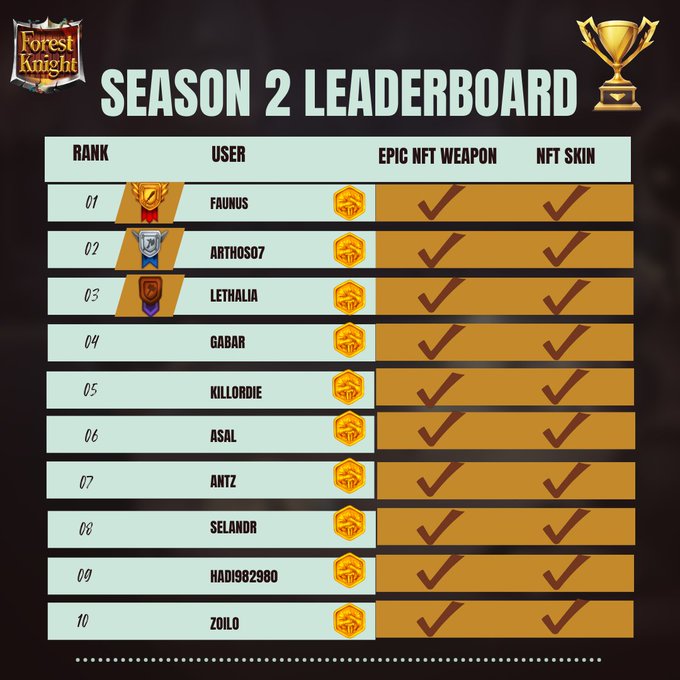 Greetings Knights!! season two leaderboard🎖️ Congratulations