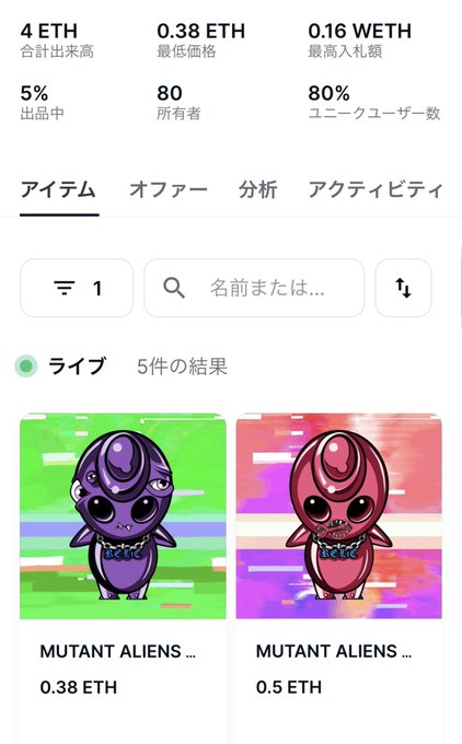 あれ… おかしい… リビール後はフロアプライス下がるのが普通なんじゃないの? リビール前0.3からむしろ上がってんじゃん! ジンを買わせて!! #MutantAliens