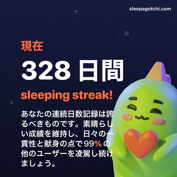 睡眠続行中です!💤 Sleepagotchiに登録しましょう!:https://t.co/HHZr1PqZhy