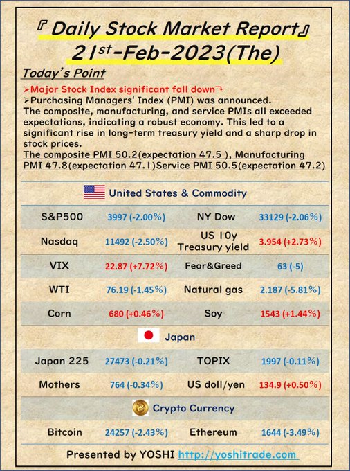 『Daily Stock Market Report』 21st-Feb-2023(The) 1/ ☑Major