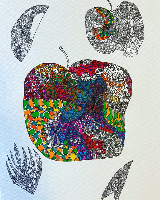 りんごが ゴリラを抱いてるかんじ🍎🦍 #読書 #挿絵 #ファッション #art #アート #神戸 #イラスト動画 #発達障害 #ペン画 #原画 #パラアート #painting