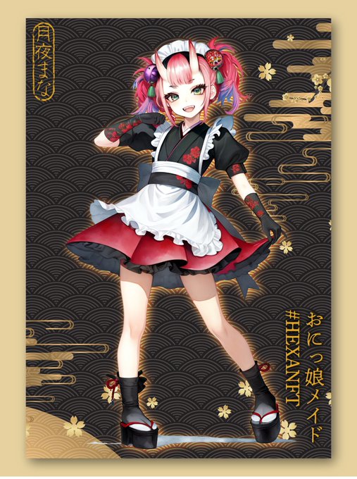 審査中OK出れば18時~リスト! 👹おにっ娘メイド#参 🎁和モダン額装モックアップ画像付 #HEXANFT メイドシリーズを3000jpyで販売するのはこの#参まで🙏通常でもクオリティ>価格を自負してますが、背景自作→モックアップとさらに創作工程を重ねるためご了承くださいませ🙇♀️ https://t