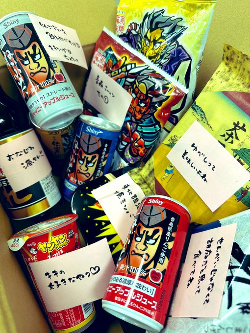 皆さん見てください😭✨✨ わらしべ長者になりました❗️ NFT付きお菓子のお迎え回数No.1の特典でお菓子送ったのに!!! 逆に?!逆に?! しかも1つ1つにメッセージつけてくれて!!! こんなねぶた推しはじめて!!! (//இωஇ//) ありがとぉぉキキしゃぁぁーー 息子の嫁に来ないかぁぁーー