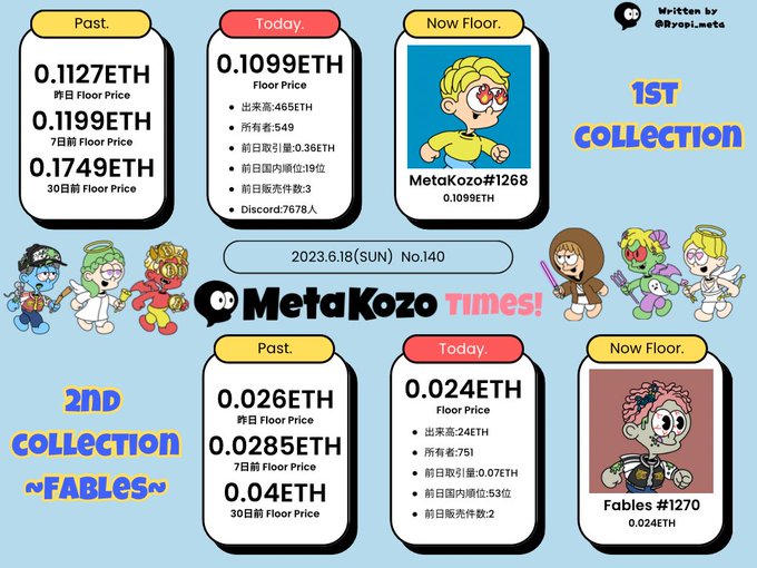 MetaKozo Times! No.140 2023.6.18(SUN) MetaKozoの最新情報を毎日発信中✌️ ぜひ、君もにょーんずになろう🚀 🔻リプ欄で語ろう📲 「コインもNFTも今が仕込みどき👍」 #MetaKozo #MetaKozoTimes #TeamFables