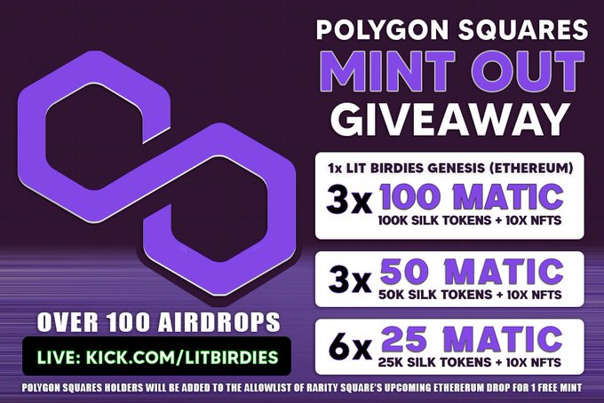 Polygon Squares 🟪 #NFTDrop 3x 100 Matic + 50k Silk
