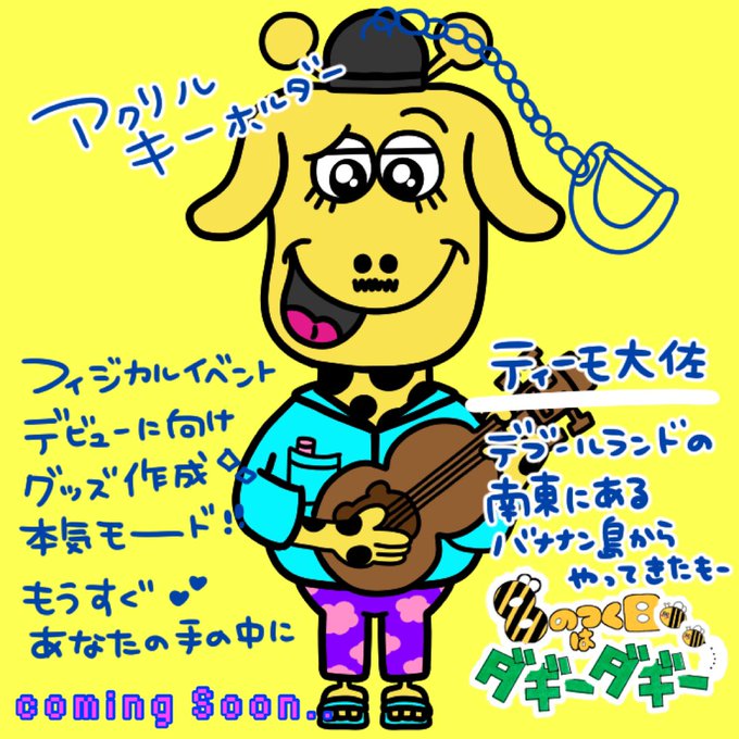 イベントグッズ作成中だぎ🐝🌈 🌟アクリルキーホルダー🌟 【ティーモ大佐】 デブールランドの南東にある バナナン島からやってきた ダギーダギーに ウクレレを教えてくれたよ♪ ダギーダギーはNFTだけでなく たくさんの方に知って頂けるように フィジカルでの活動にも チカラを入れていきます🐝🌼