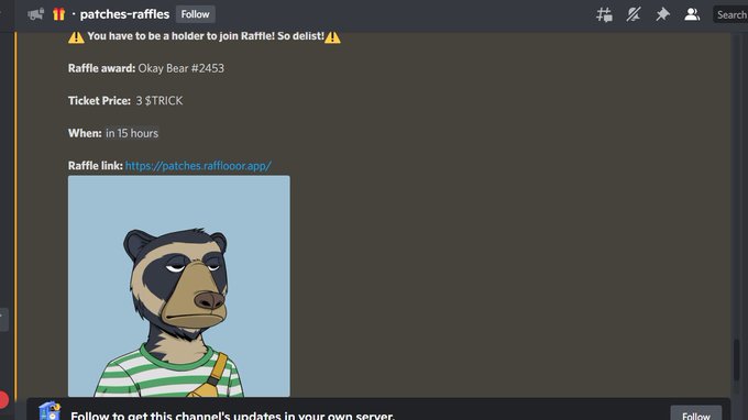 @Patches_NFT so wild they are raffling off an @okaybears