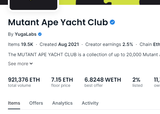 すごいな! Yugaバーゲンセール😱 #BAYC 36ETHで売れている! #MAYC 6ETH台! 買う人少なくなっている 今買う理由あまりない エアドロ今のところなさそう 今YugaはPFPよりOthersideとゲームjの方にフォーカスしている 全体的に