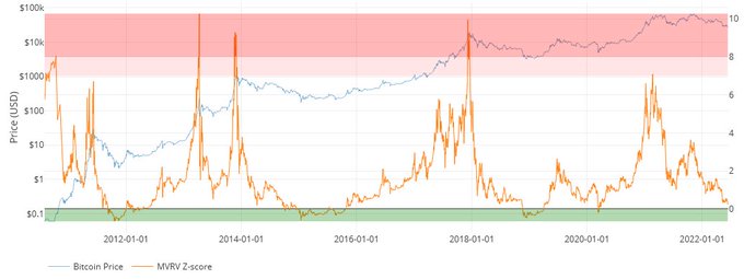 Bitcoin MVRV Z-Score almost in the green zone. Historically