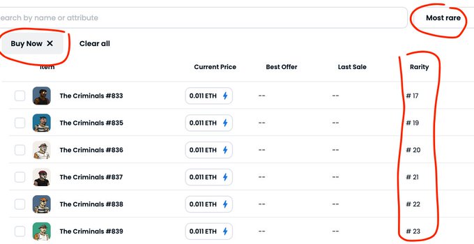 Updated list of the rarest with a super low price #thecriminals