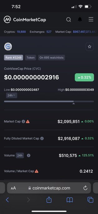 #cvc #CoinViewCap volume has raised up 125% today.