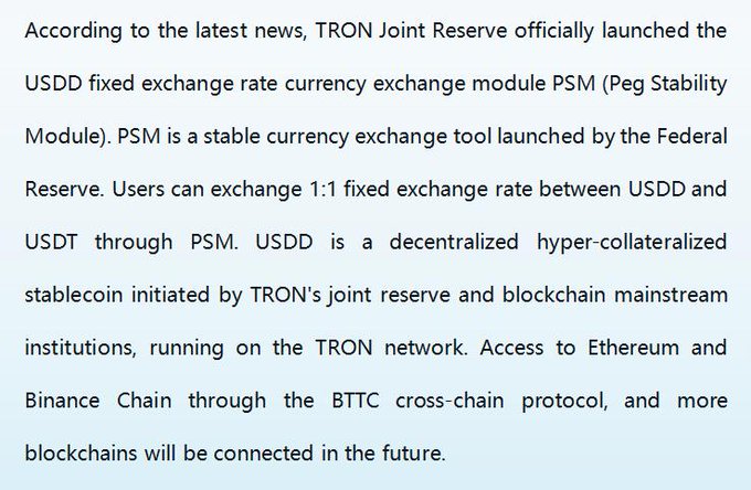 TRON United Reserve officially launched the USDD fixed