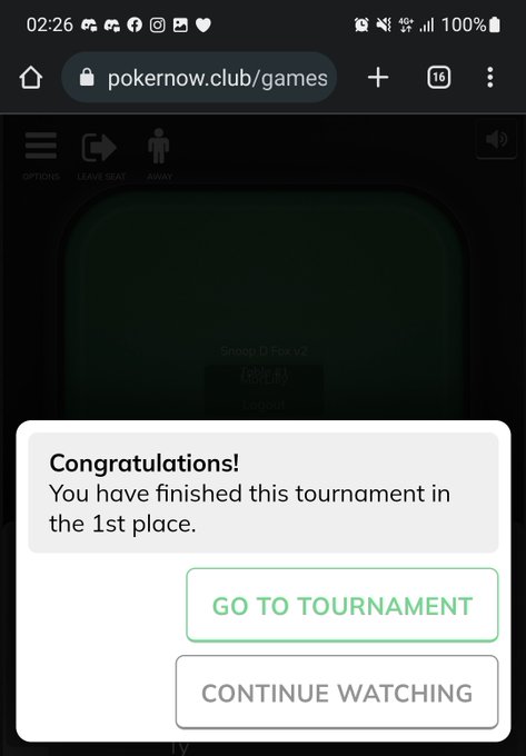 Just got 1st place on @SnoopDFox's poker night again