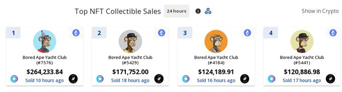 #BoredApeYachtClub topping NFT sales today 🐵 #NFT