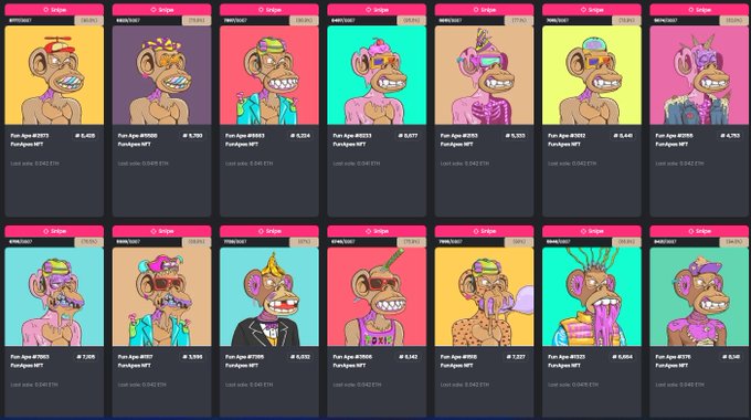 I swept 1 ETH+ of @FunApes_NFT 🫡 Giving them away