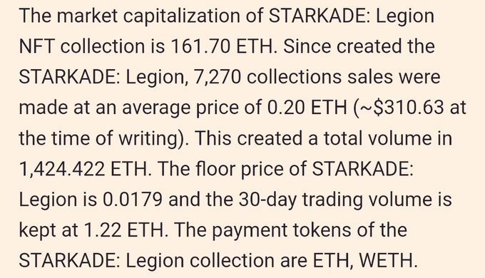 #NFT Collection #STARKADE: Legion Price And Sales. STARKADE: