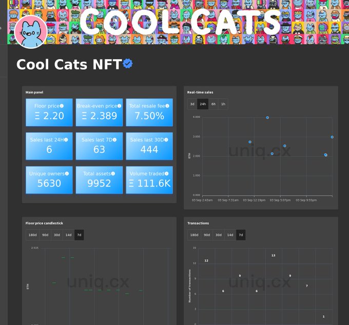 Real-time charts for Cool Cats NFT. Follow us for
